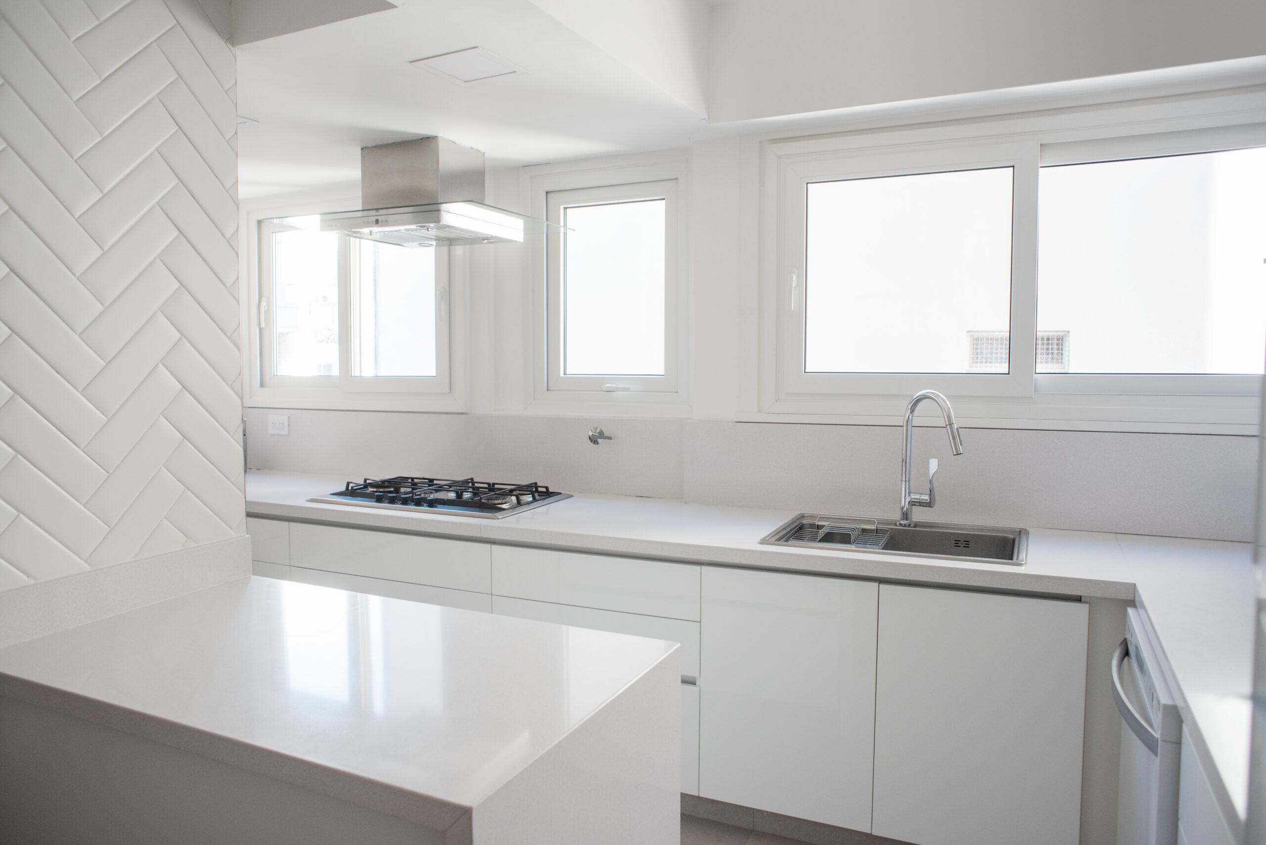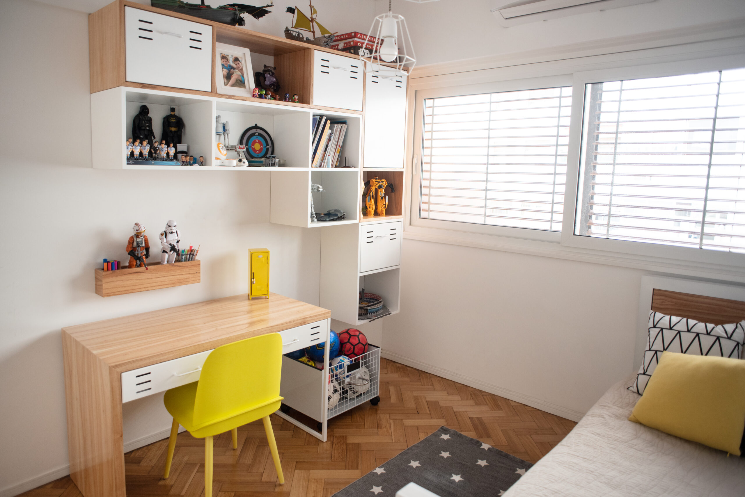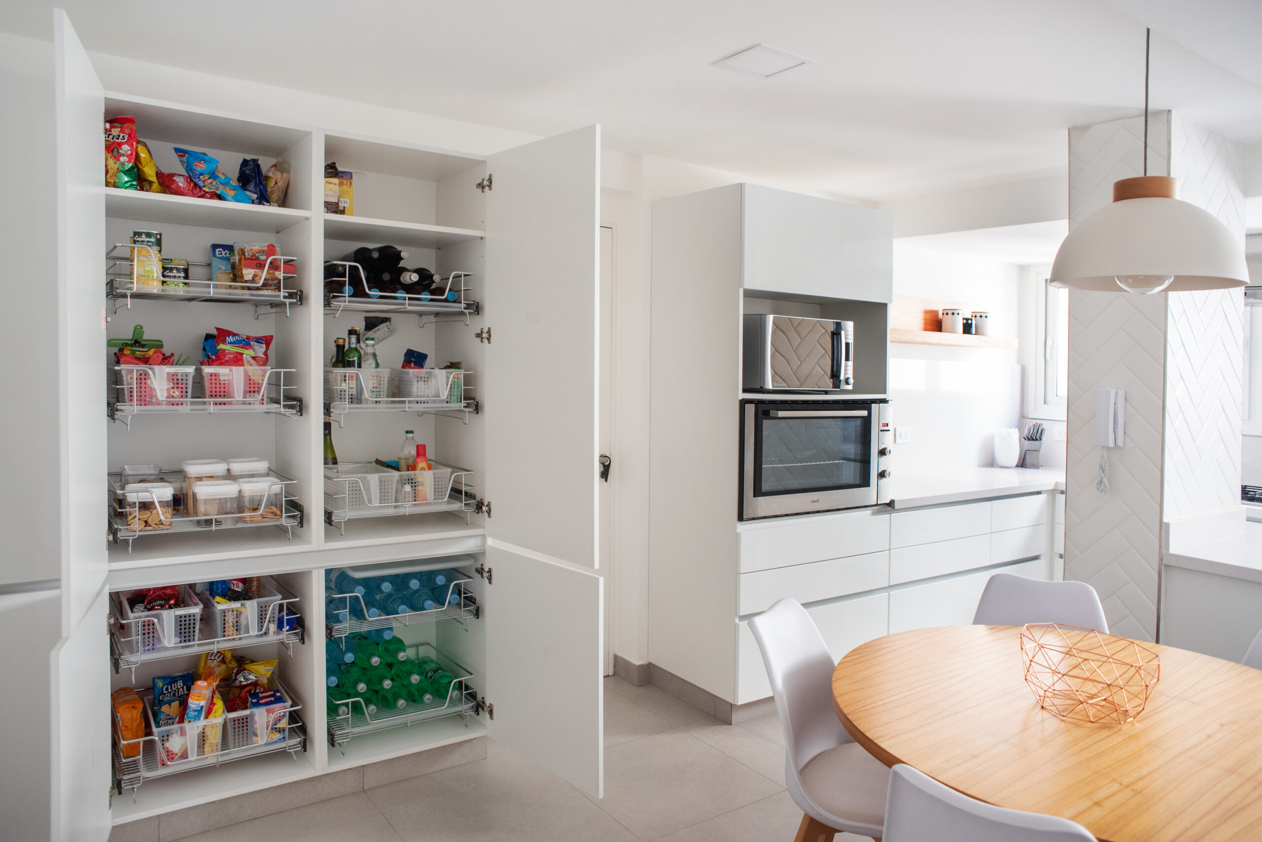 Esta obra comenzó con un asesoramiento previo a la compra de la propiedad y la posibilidad de ver distintas opciones de planta. Se replanteó todo el sector de servicio para crear una amplia cocina con un comedor diario, lugar de encuentro de esta familia. Se modificó la circulación del departamento más acorde a los usos de los clientes. Se hizo una restauración de los pisos y una modernización de las instalaciones. Se hicieron a nuevos los baño con tonos grises y blancos atemporales y se equiparon los departamentos de los niños.
