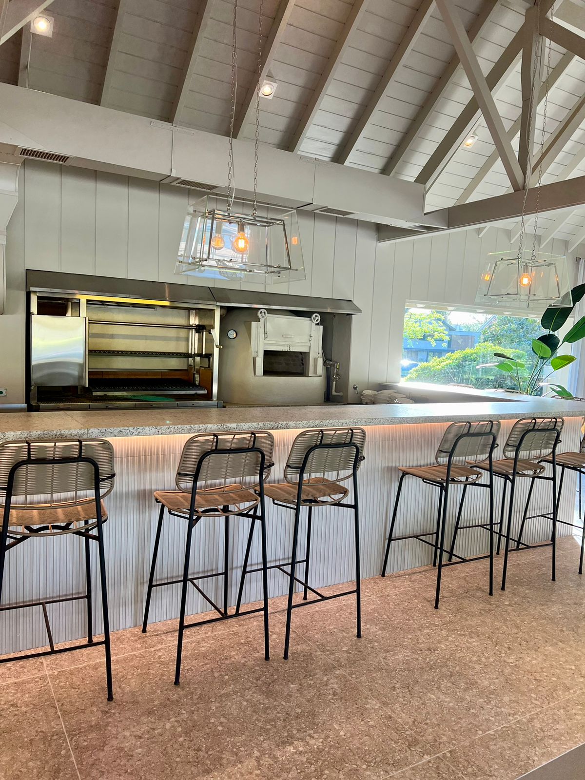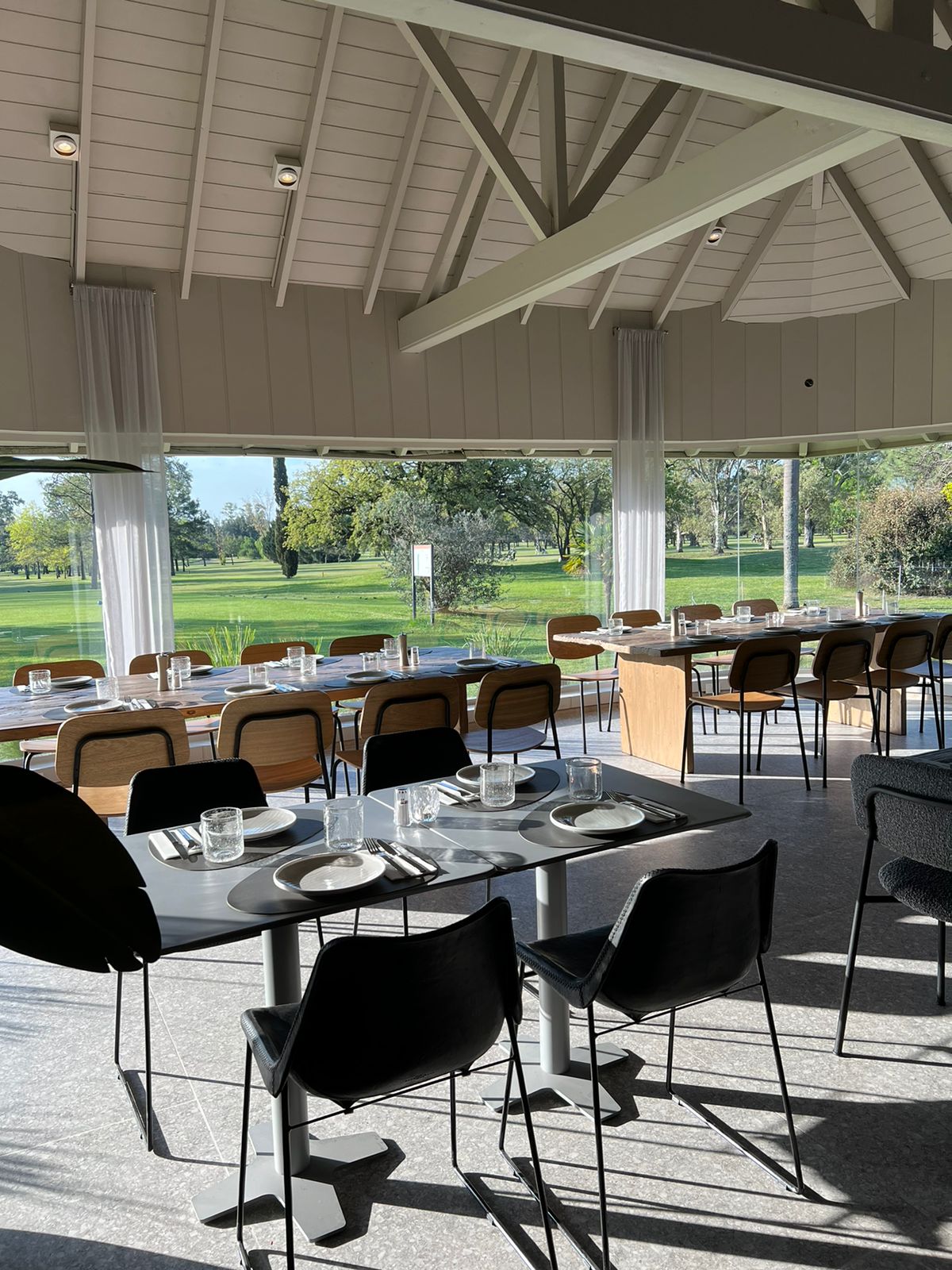 Esta obra proyectada junto con Mariana Flombaum esta situada dentro del Country Miraflores. Quisimos partir de una caja neutra dandole importancia a la hermosa cabreada existente y materiales que ayuden visualmente a percibir la altura del lugar. Elegimos colores grises en los revestimientos y granitos, contrastandolos con mesas y sillas de madera y algunos objetos naranjas, color propio de la identidad del country.
